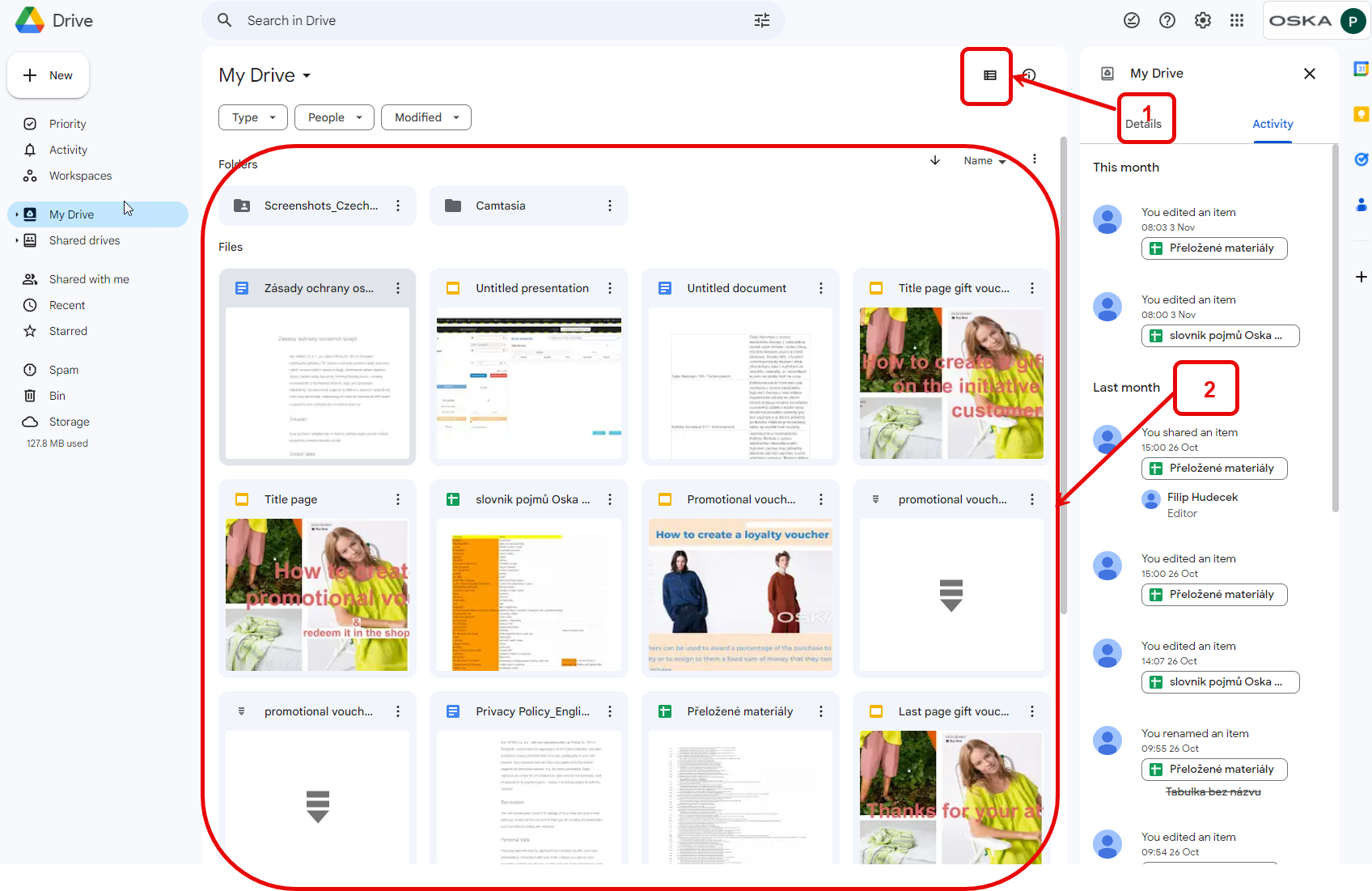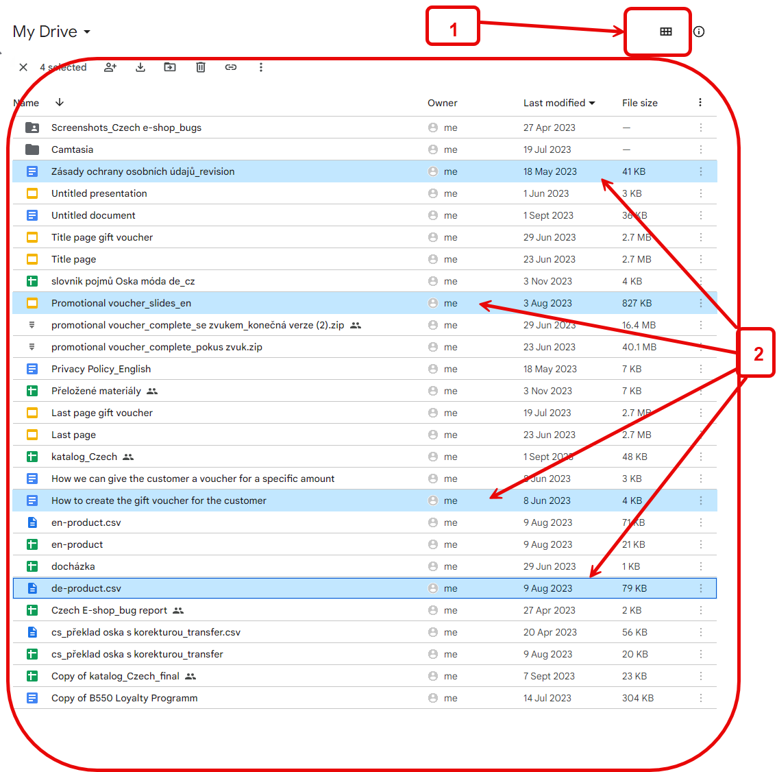 2. All selected files are in My drive.