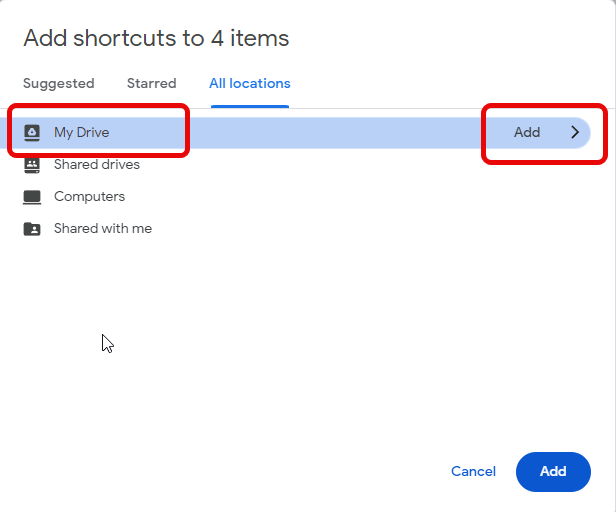 Go to All locations > My Drive > Add