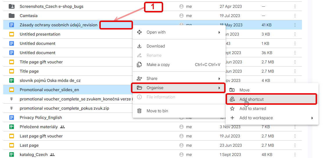 1. Right click the selected file and go to Add shortcut