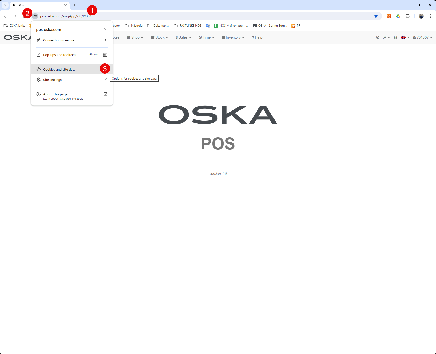 - Go to the specific website (POS, ERP, ..) for which you want to delete cookies.