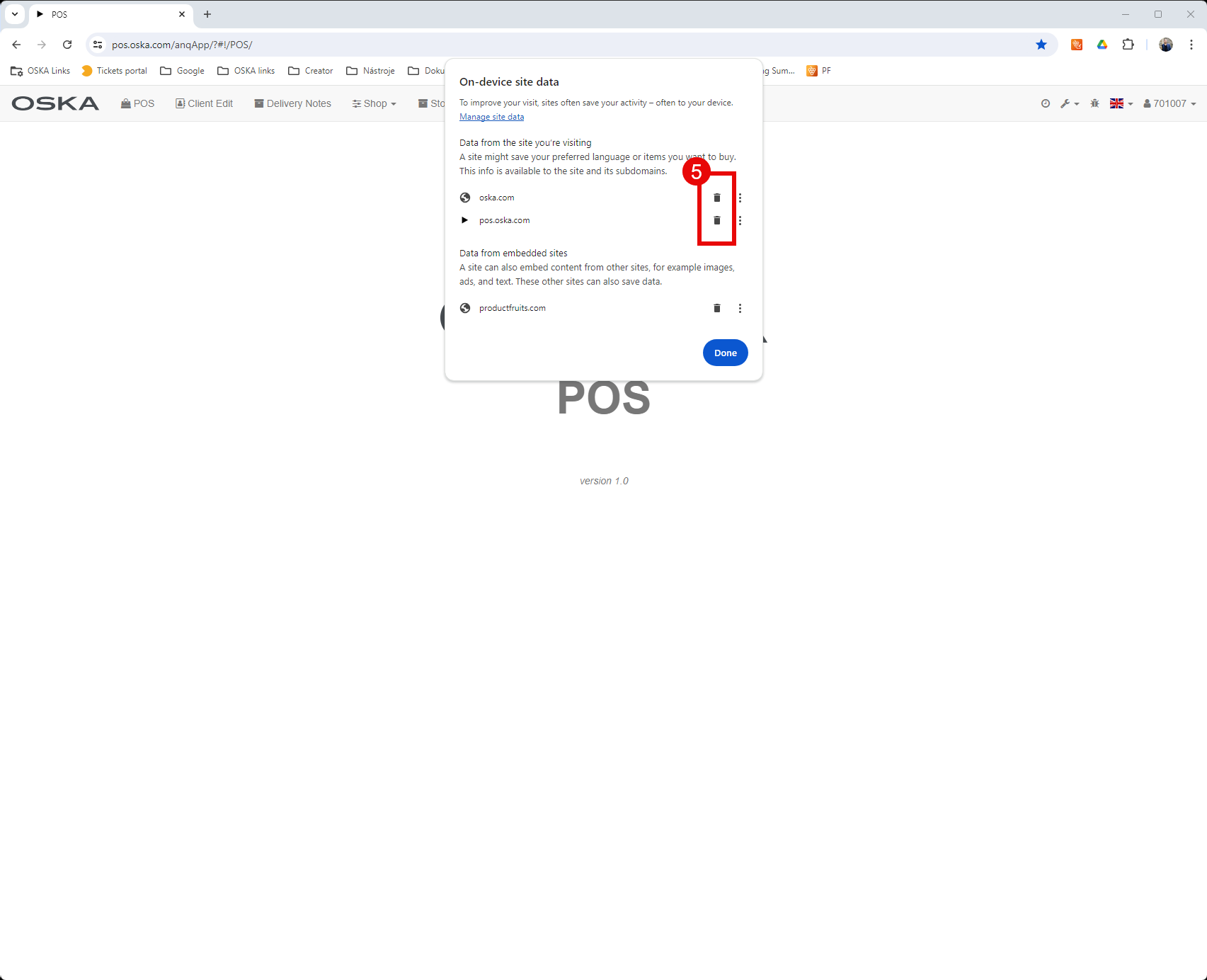 - Confirm the deletion of cookies by clicking "Done".