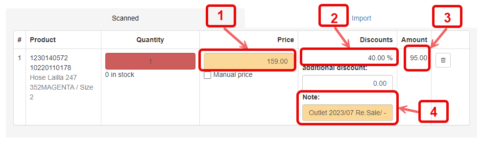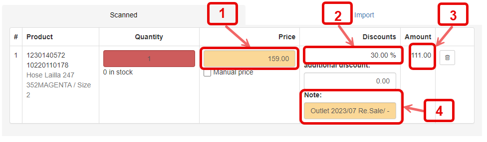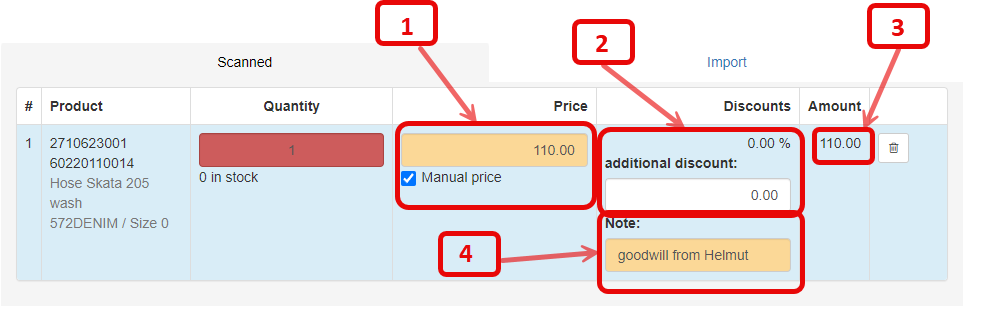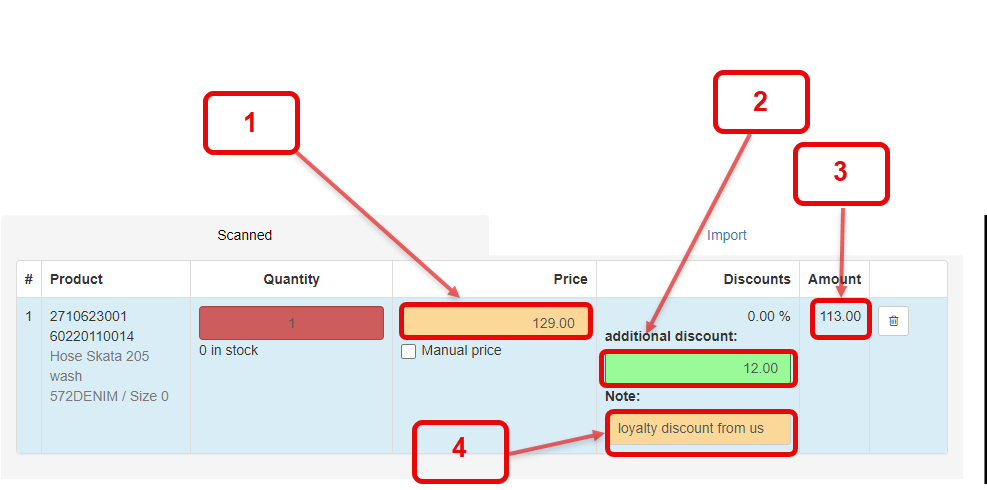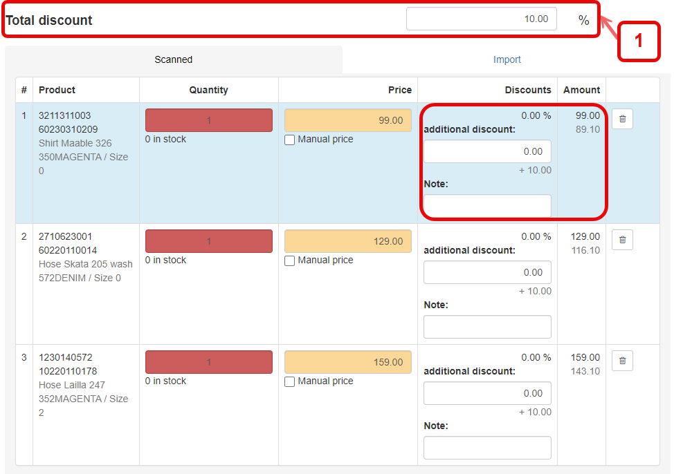 1. Total discount is entered here above and applies to the entire purchase