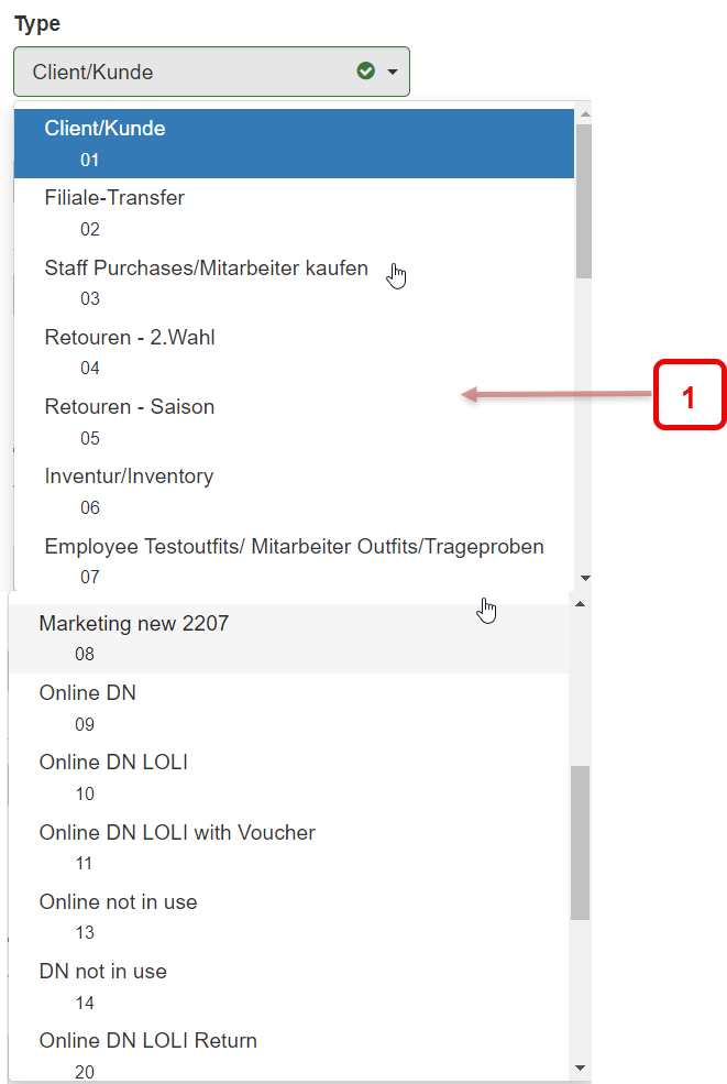 1. It is very important to select the correct delivery note type in order to be able to classify and post them correctly during the delivery bill inventory. Therefore, always select the appropriate delivery note type.