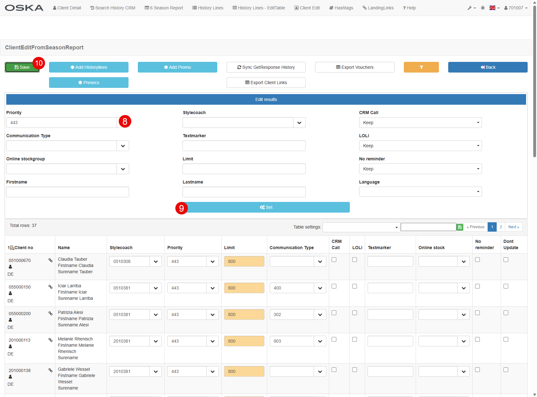 - Edit resulting client
