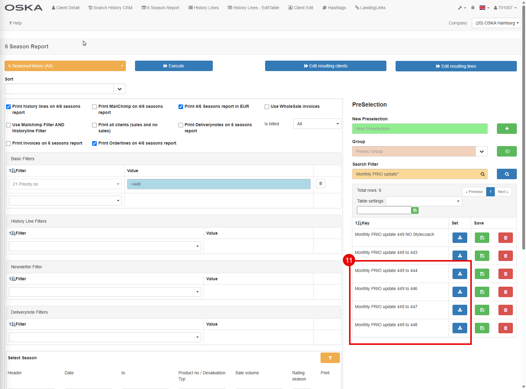 It is important to respect the order of PreSecs (update to priority 447 must be processed before update to 448)